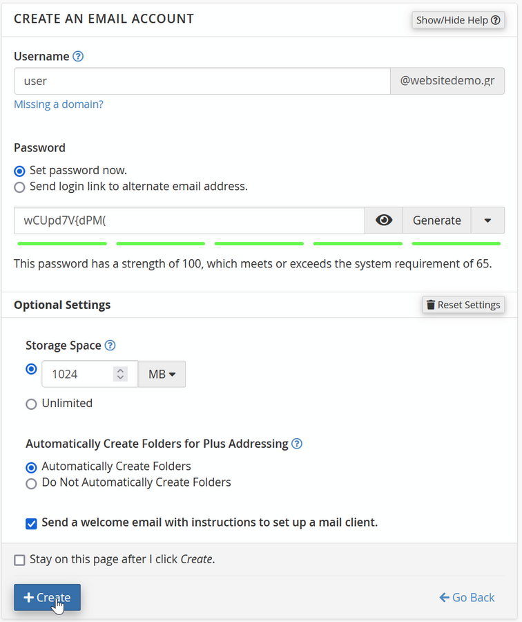 Αφού λάβετε μήνυμα ολοκλήρωσης της διαδικασίας, πατάτε Go back και δημιουργείτε αντίστοιχα ένα χρήστη στον οποίο θα δώσετε πρόσβαση. Ορίζετε το Username και το νέο Password που επιθυμείτε και ολοκληρώνετε τη διαδικασία πατώντας Save.