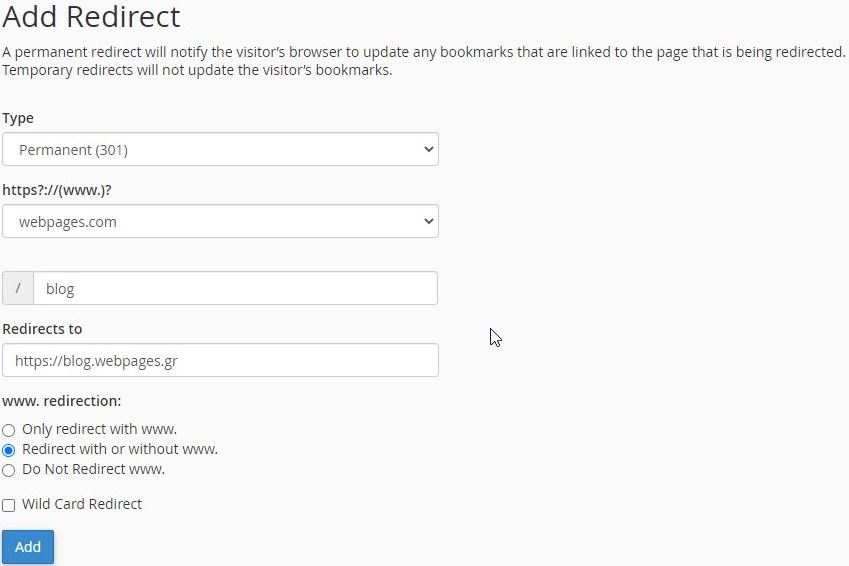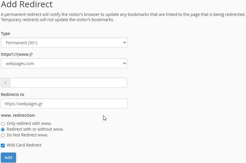 Μια προώθηση domain συνήθως πραγματοποιείται στο διαχειριστικό του cPanel.