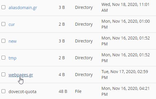 Πλέον έχετε αναλυτική εικόνα όλων των φακέλων και των αρχείων* που είναι διαθέσιμα στο server σας. Επιλέγοντας ένα αρχείο (ή φάκελο), μπορείτε με δεξί κλικ να πραγματοποιήσετε τις εξής ενέργειες: Download, View, Edit, HTML Edit, Move, Copy, Rename, Change Permissions, Delete, Compress.